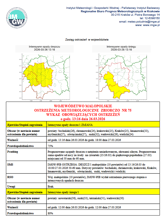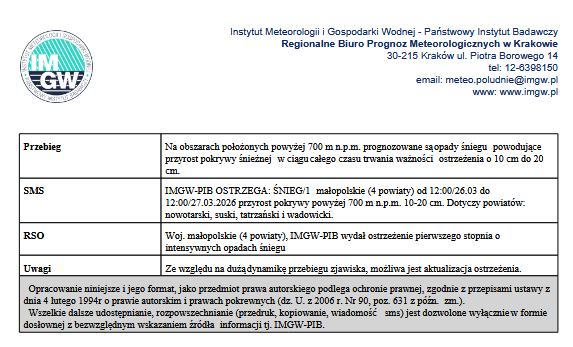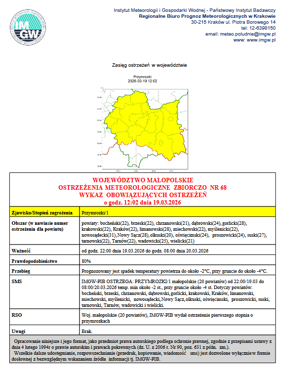 OSTRZEŻENIE METEOROLOGICZNE NR 68