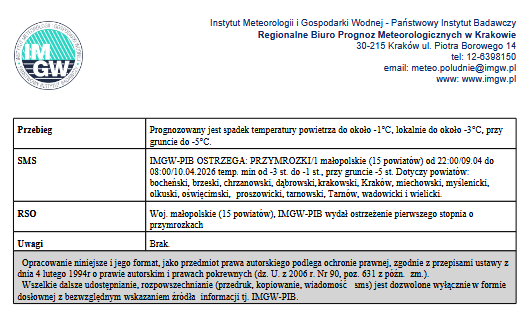 OSTRZEŻENIE METEOROLOGICZNE NR 59