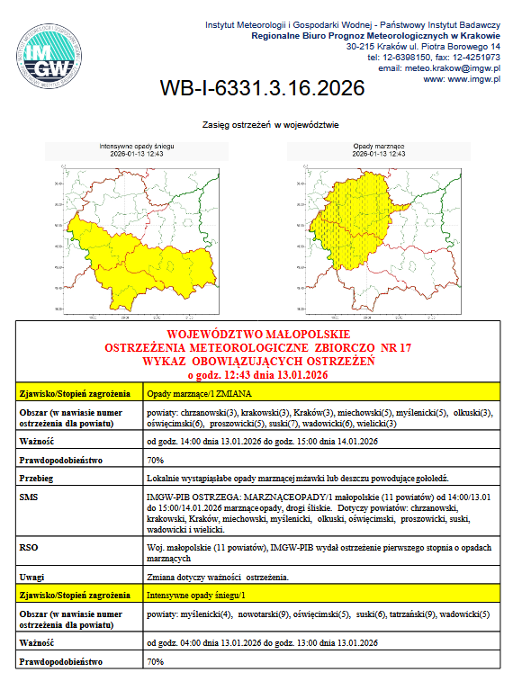 OSTRZEŻENIA METEOROLOGICZNE NR 17
