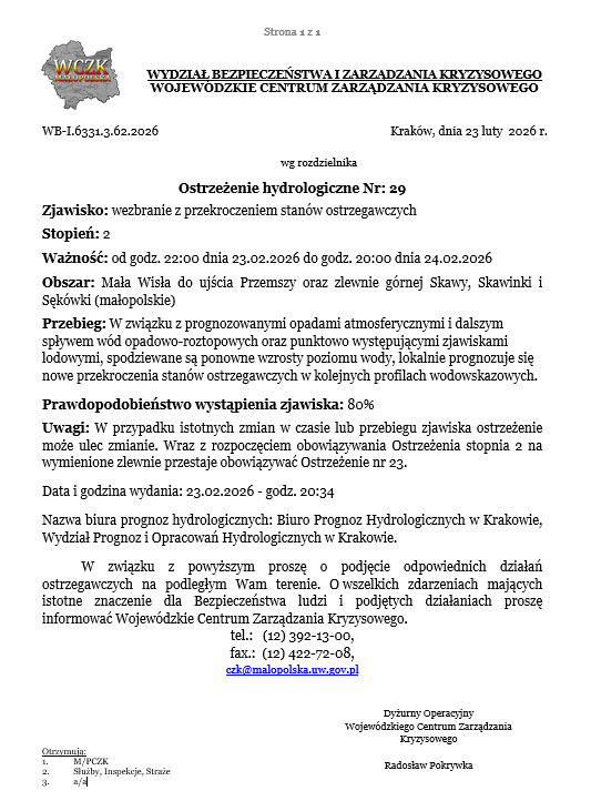Ostrzeżenie hydrologiczne nr 29