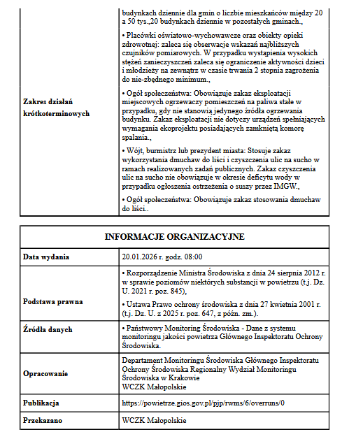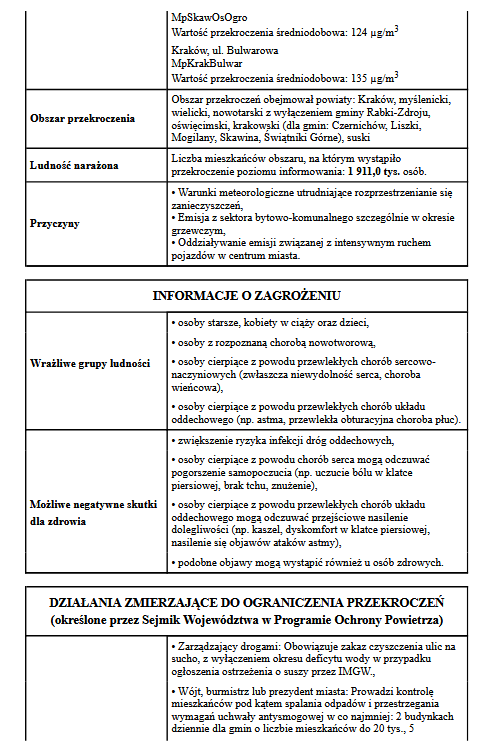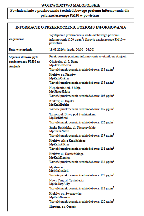 Powiadomienie o przekroczeniu średniodobowego poziomu informowania dla pyłu zawieszonego PM10 w powietrzu